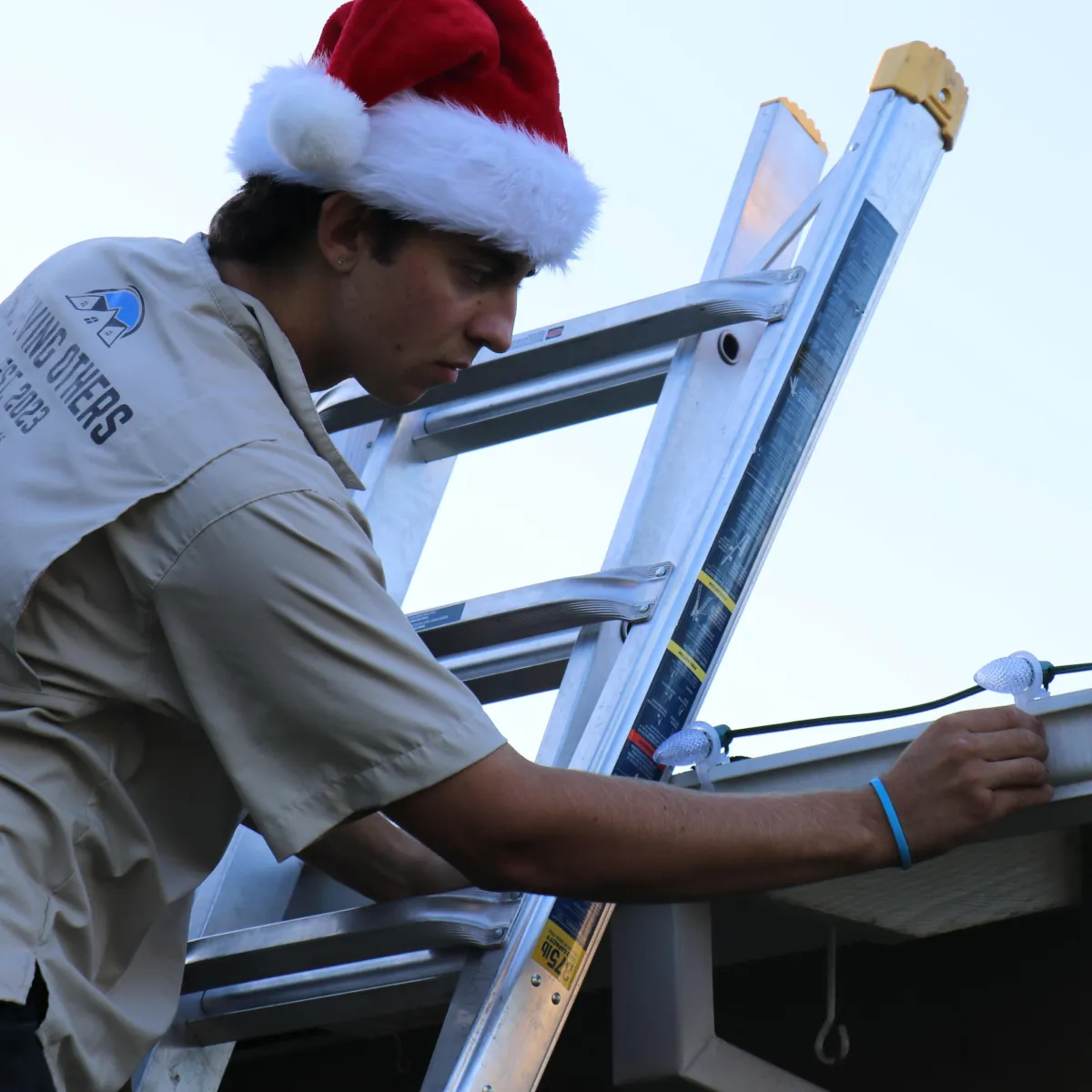 For $150 and a slice of pizza, he'll get the job done... As long as your ladder, bulbs, and clips are included. Just make sure you have homeowner's insurance...
